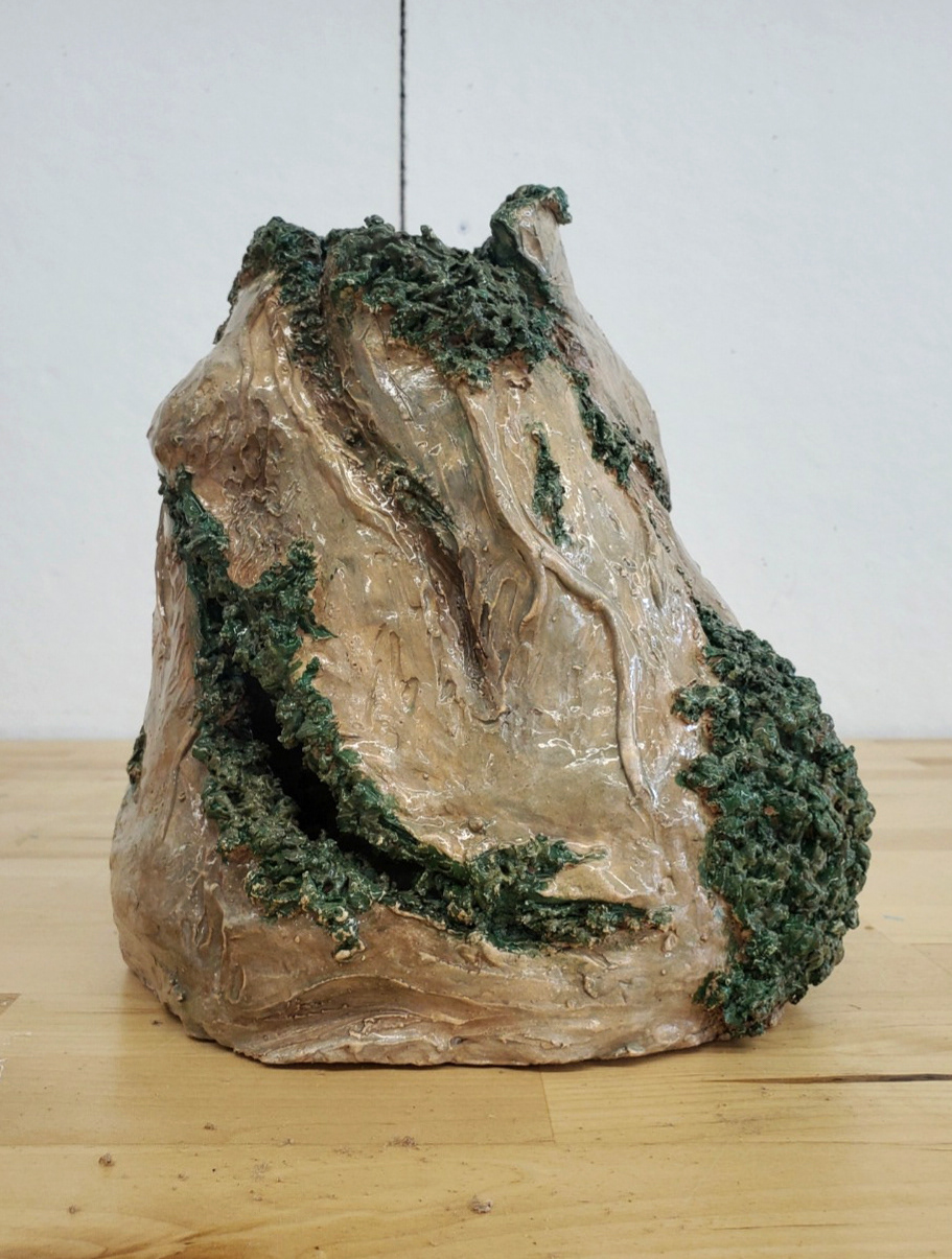 I made this piece in a hand-building ceramics class, where I was asked to create a minimum 12-inch tall ceramic sculpture. Taking inspiration from natural textures, I played around with how I could manipulate the clay to look like natural material. I wanted to make something that could naturally occur in nature but doesn’t look like something specific.
